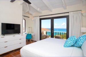 Renovated in 2025, the newly added fourth bedroom is a beautifully remodelled 500-square-foot cottage, located just 150 yards from the main house. This standalone guest house has been completely transformed in the same contemporary style as the villa. Inside, you’ll find a queen-size bed, an en-suite bathroom, a kitchen equipped with modern appliances, and a cozy living room with a sofa bed—ideal for a couple and a small child. Adding to its charm, the front porch offers stunning ocean views, while the back sundeck overlooks the tranquil waters of Simpson Bay, creating the perfect setting to relax and unwind.