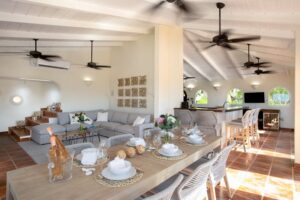 There are many ways to experience the “joy of living” at Villa Joie de Vivre. Skip the airport or ferry and have a helicopter pick you up directly in the backyard to fly you within minutes to St. Barths for lunch or Anguilla for a round of golf. The expansive grounds make it an ideal setting to accommodate a glamorous wedding reception after you walk down the aisle on the beach. Or perhaps you are a land-lover seeking a break from a boat charter, where you can easily tender back and forth from your yacht via the beach.