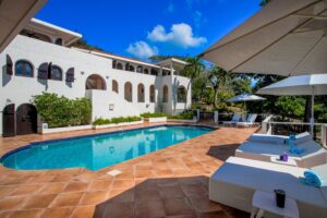 One of the main attractions of Villa Joie de Vivre is its direct access to the very peaceful and secluded Baie Rouge beach. The villa is perfect for those who want to be right on the beach, while maintaining their privacy. Guests can snorkel in the calm waters or sunbathe on the provided chaise lounges, then slip back through their private locked gate to relax in the hot tub. The property’s other centerpiece is the pool deck with its 18’ x 35’ heated salt water pool, lined by double sunbeds, a shaded gazebo lounge, BBQ area with fridge and bathroom.